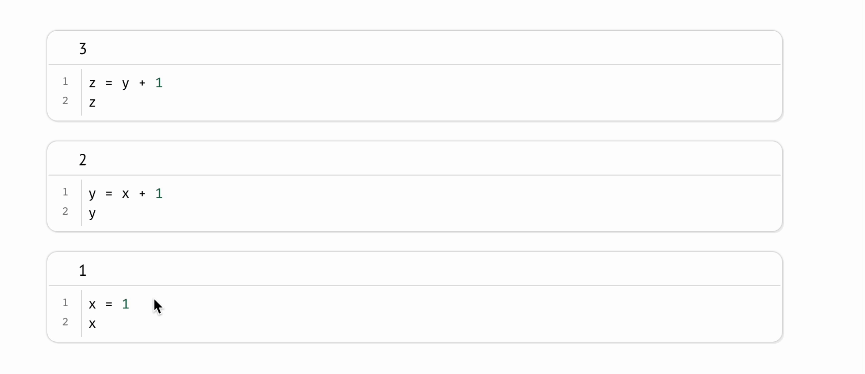 Deterministic execution order. Notebooks are executed in a deterministic order, based on variable references instead of cells’ positions on the page. Organize your notebooks to best fit the stories you’d like to tell.